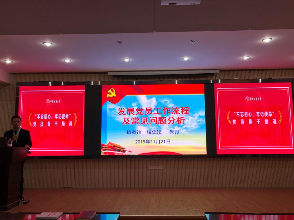 经过深入了解学生党员骨干的痛点难点,工程学院党委从理论探讨与实务培训两方面安排培训课程。邀请专职组织员、档案馆副馆长朱丹老师作“发展党员工作流程及常见问题分析”实务培训、工程学院党委副书记江广长作“加强学生党支部建设,推进全面从严治党向纵深发展”理论探讨。全体学生党支部书记、委员,学生党建办公室全体成员参加培训。以问题引发思考、以思考研习理论、以理论指导实践,环环相扣。持续提升党员骨干党性修养,再以骨干带动普通党员,以点及面,最终形成全员覆盖,全员进步。