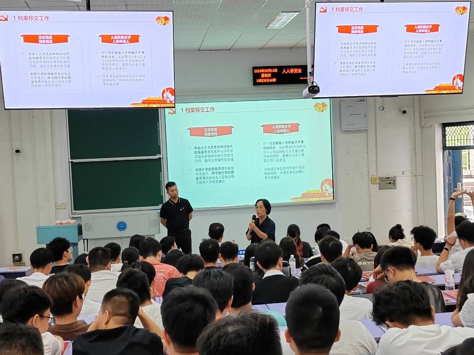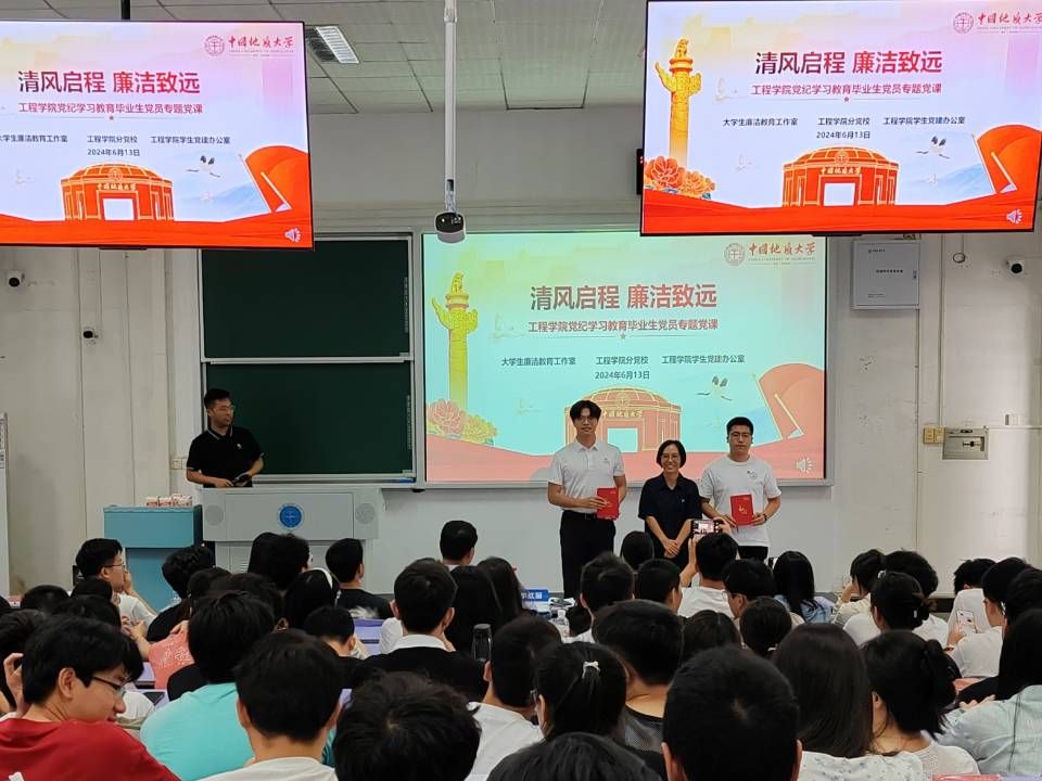 (通讯员:温浩)为做好毕业生党员教育管理,推进全面从严治党向纵深发展、向基层延伸,增强学生党员党性修养、组织观念、党纪自觉和先锋意识,守好人才培养最后一公里,扣好毕业生步入社会的“第一粒扣子”。2024年6月13日下午14:30,工程学院毕业生党员党纪学习教育专题党课在教三楼207举行,工程学院党委书记李红丽,党委副书记、纪委书记高晓东,学生党建辅导员王焱出席会议。